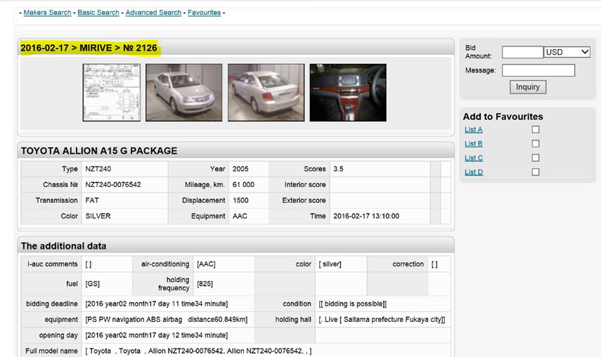 When you search for a vehicle and go to the page where you can see the details of the unit, you should see that the “Inquiry” button has changed to a Send Bid button.