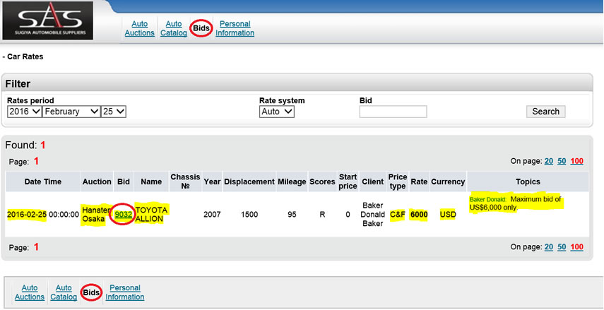 HELPFUL TIP : You will also receive an email from SAS confirming that we have received instructions to bid on a vehicle for you. Your bid needs to be placed before 8AM Japan time of the day of the auction in order to allow our staff to confirm the information.