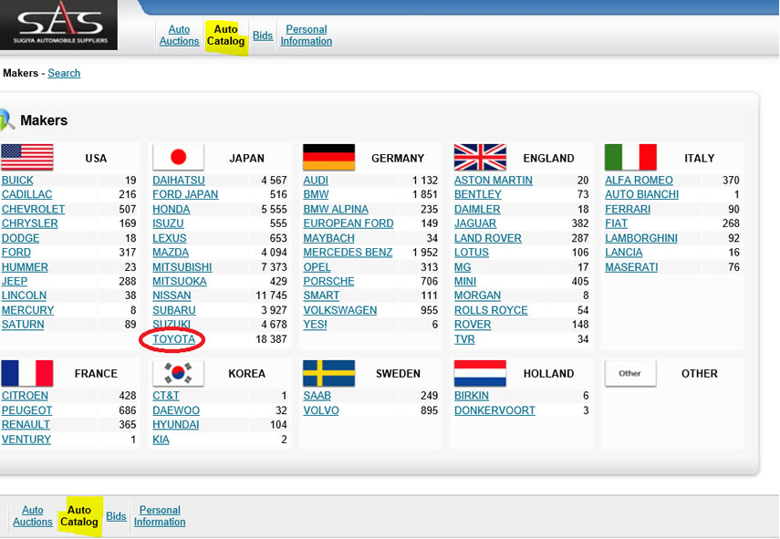 15. Once you have paid an auction deposit, you will have access to the SAS Auto Catalog. The Auto Catalog is a very powerful tool that will allow you to be an expert on the specifications of all cars, models and grades.
